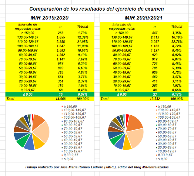 Ahí están los datos de 237.038 examinados, incluidos los de todos los subconjuntos que se presentan al examen en libre concurrencia de más de cien países, incluidos los repetidores de aquí y de allá, tantas veces como lo hayan hecho, sean los mismos recién egresados, de la promoción anterior o anteriores, recirculantes, o ya especialistas, de cualquier edad con tal de que durante la residencia no cumplan la de jubilación, y que entre todos los repetidores, por una u otra causa, rondarán entre el treinta y el cuarenta por ciento del total de presentados. Casi el treinta calculado respecto del año anterior y el cuarenta si echamos la vista atrás hasta la convocatoria MIR 2001/2002.