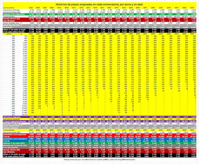 Una vez celebrado el segundo llamamiento, sumado al primero, se adjudican 8522 plazas de 8768 ofertadas, los presentados como españoles se adjudican 6984 que representan el 81,95 % y los presentados como extranjeros, afectados y no afectados por el cupo, se adjudican 1538 plazas que representan el 18,05 % del total de las adjudicadas.